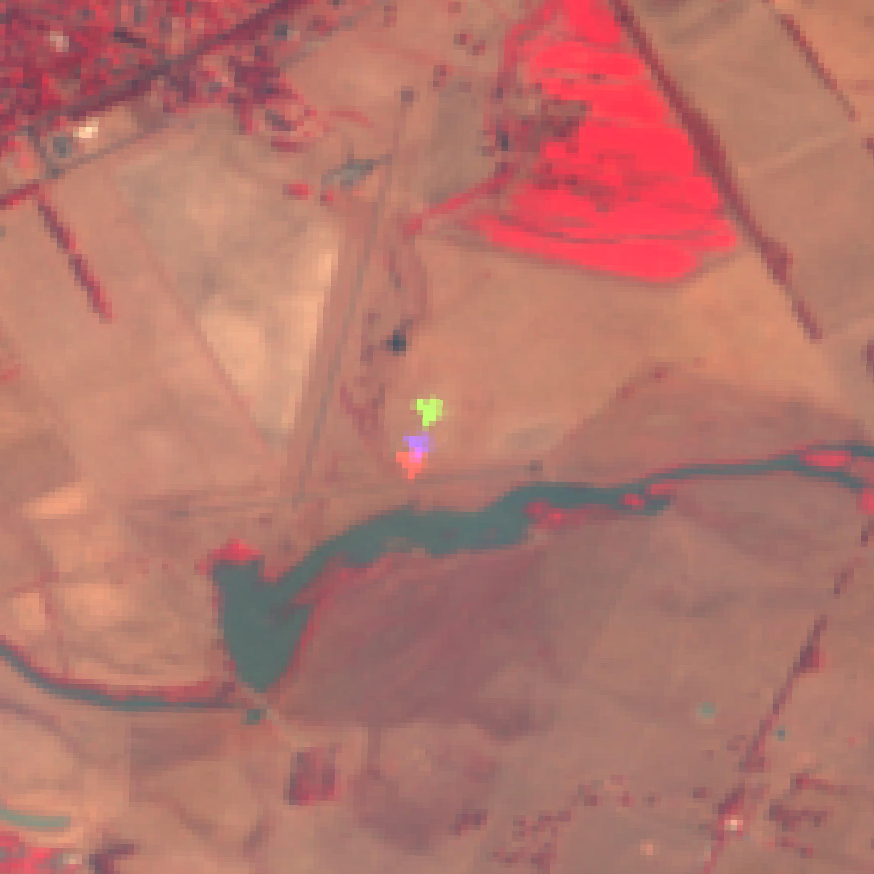 Whether the fires have spread considerably further or whether the fire-fighting mission was successful can be seen by comparing our Sentinel-2 image with a Landsat-8 image. The Landsat-8 image was recorded approximately 23:56 hours, or almost one day, after the Sentinel-2 image.